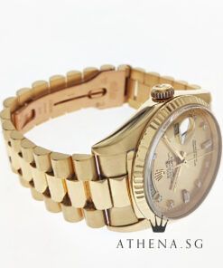 ROLEX 18K YELLOW GOLD OYSTER PERPETUAL DAY-DATE “L” SERIES “CHAMPAGNE DIAMOND DIAL” WITH CERT 18238