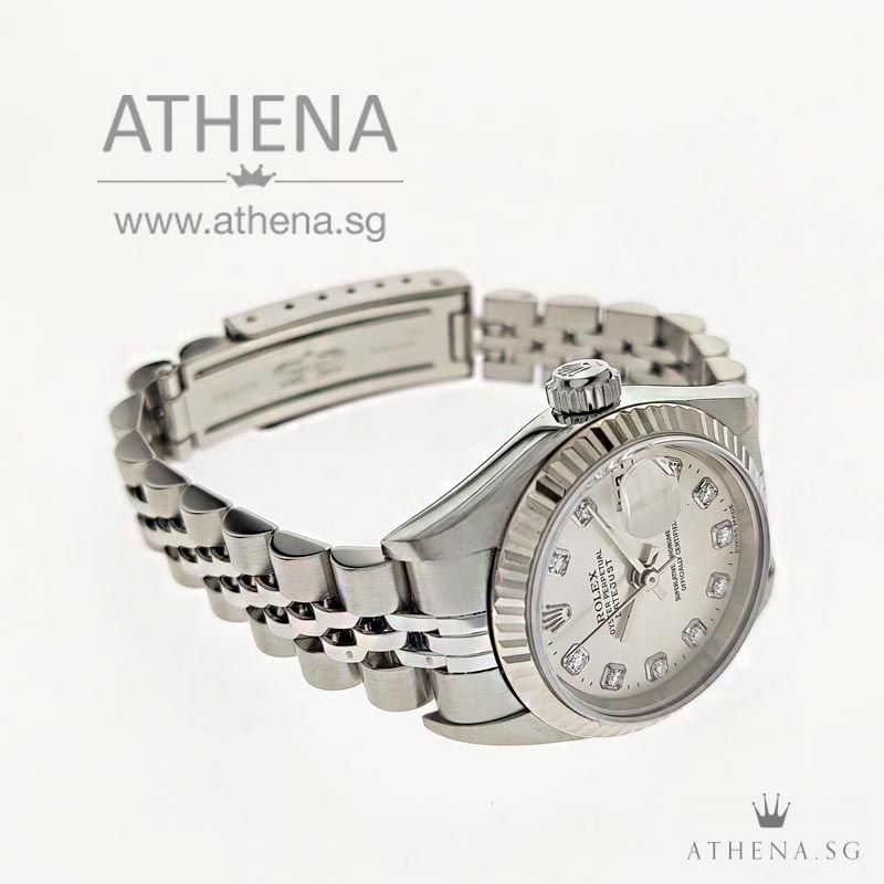 ROLEX LADIES OYSTER PERPETUAL DATEJUST “P” SERIES “SILVER DIAMOND DIAL” WITH BOX & CERT 79174