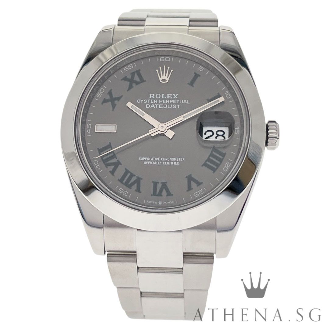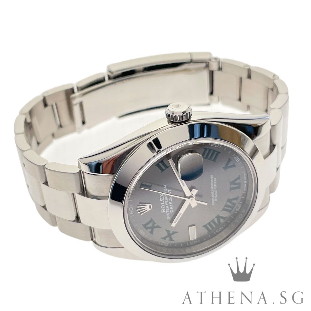 ROLEX MENS OYSTER PERPETUAL DATEJUST 41 “AN” SERIES “WIMBLEDON SLATE GREY ROMAN DIAL” WITH BOX & CERT DATED (07/2018) 126300