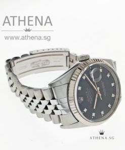 ROLEX MENS OYSTER PERPETUAL DATEJUST ” W ” SERIES ” BLACK DIAMOND DIAL ” 16234