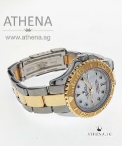 ROLEX YELLOW ROLESOR LADIES YACHT-MASTER ” A ” SERIES ” WHITE ONYX DIAL ” WITH CERT & ROLEX POUCH 169623