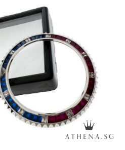 18K WHITE GOLD CUSTOM MADE SUBMARINER SARU RED BLUE RECTANGLE BAGUETTE-CUT BEZEL 40MM