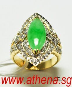 18K YG JADE RING WITH DIAMOND D76-1.14CTS 7.33G (SIZE 14)
