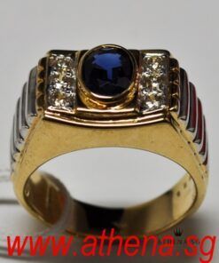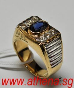 18K 2 TONE DESIGN BLUE SAPPHIRE RING WITH DIAMOND D6-0.30CTS 11.42G (WITH CERT)