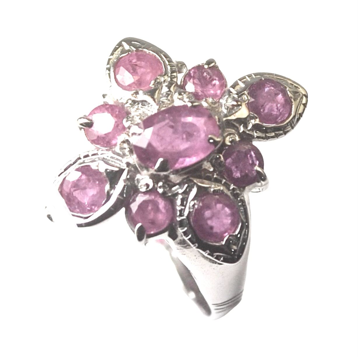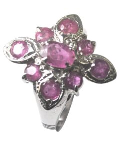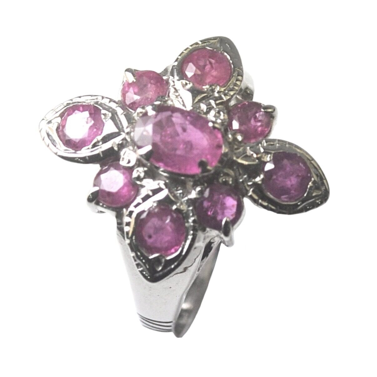 18K W/G FLOWER DESIGN RUBY RING 3.12G (SIZE 13.5) [NETT $688.00]