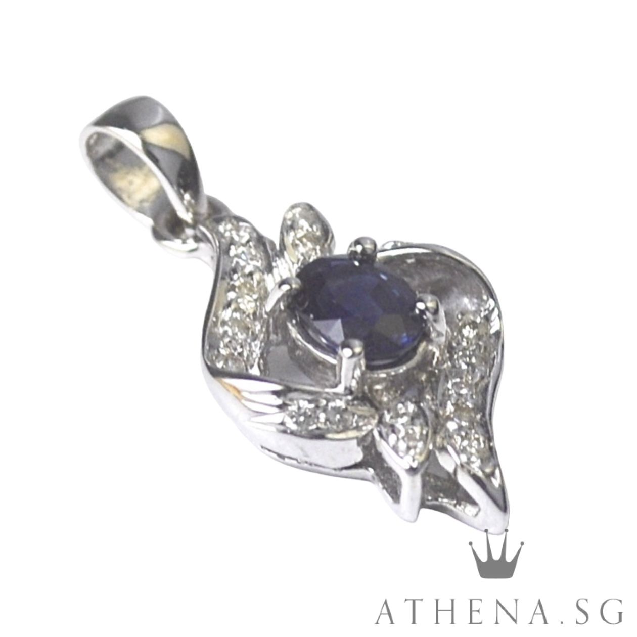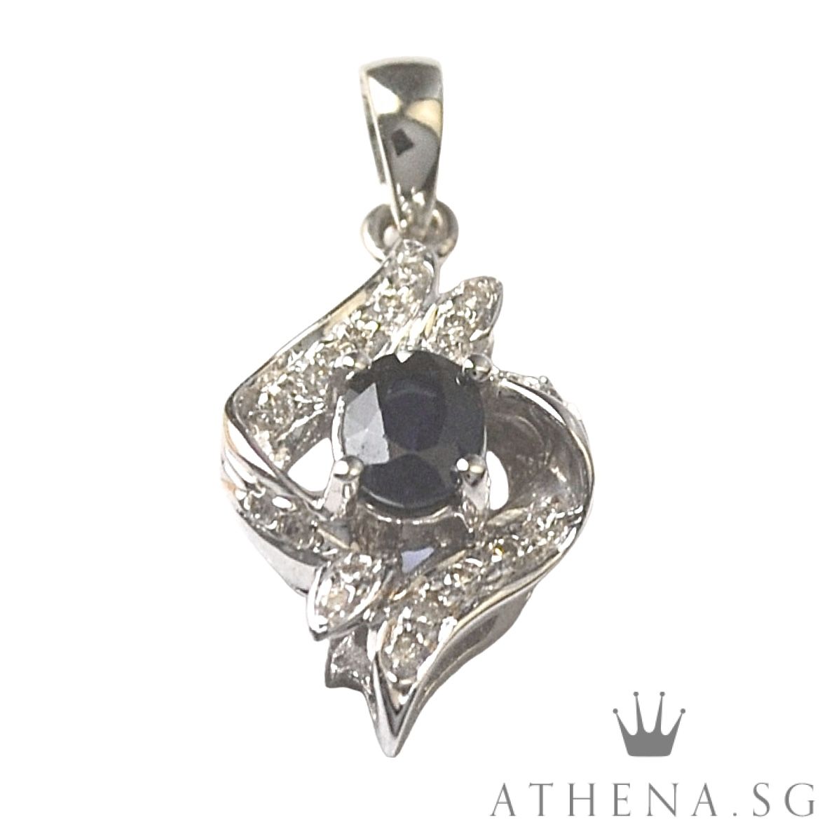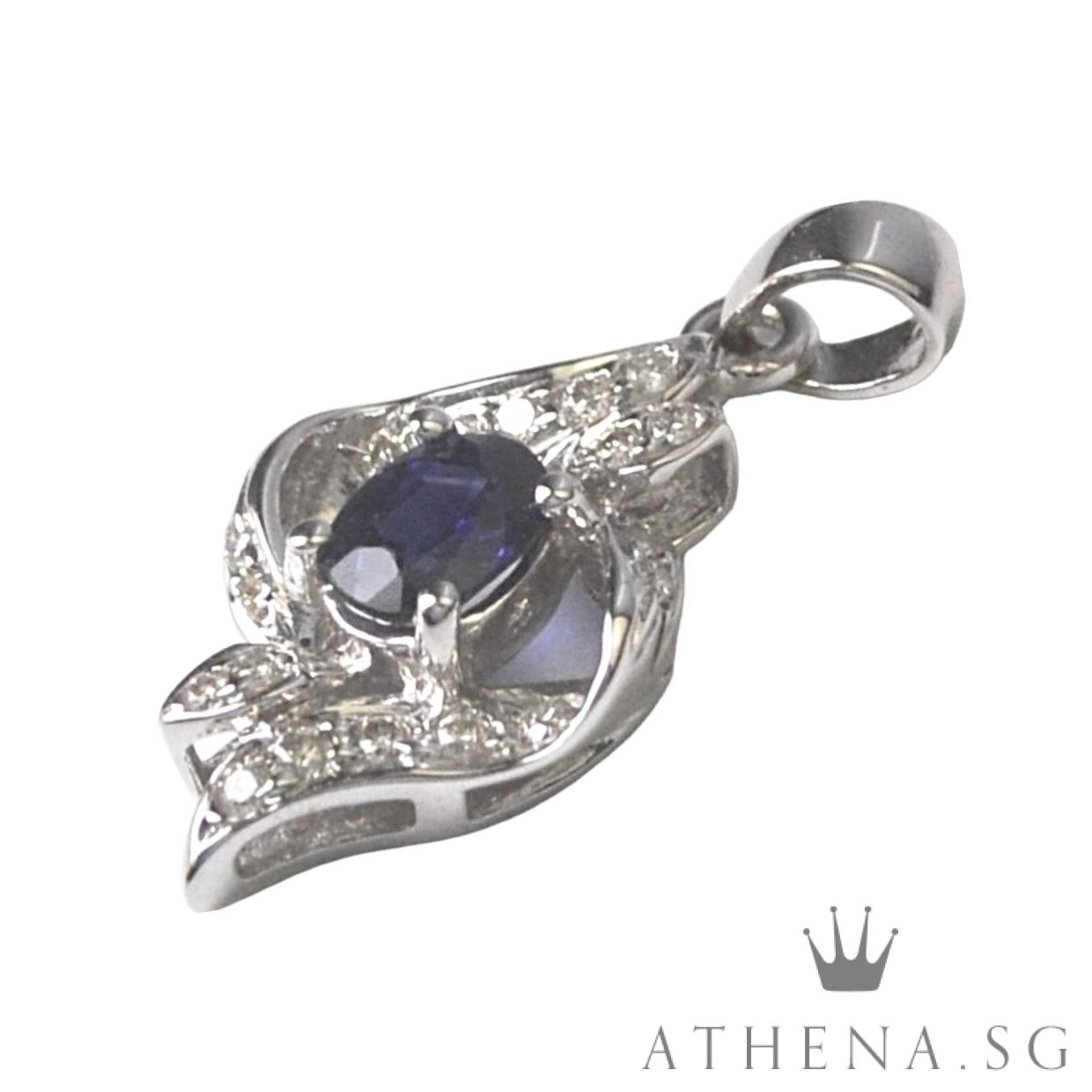 18K WG BLUE SAPPHIRE DIAMOND PENDANT D14-0.10CTS 1.58G [NETT $558.00]
