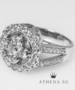 18K WG FLOWER DESIGN DIAMOND RING D50-1.28CTS 7.03G (SIZE 12) [NETT $1,588.00]