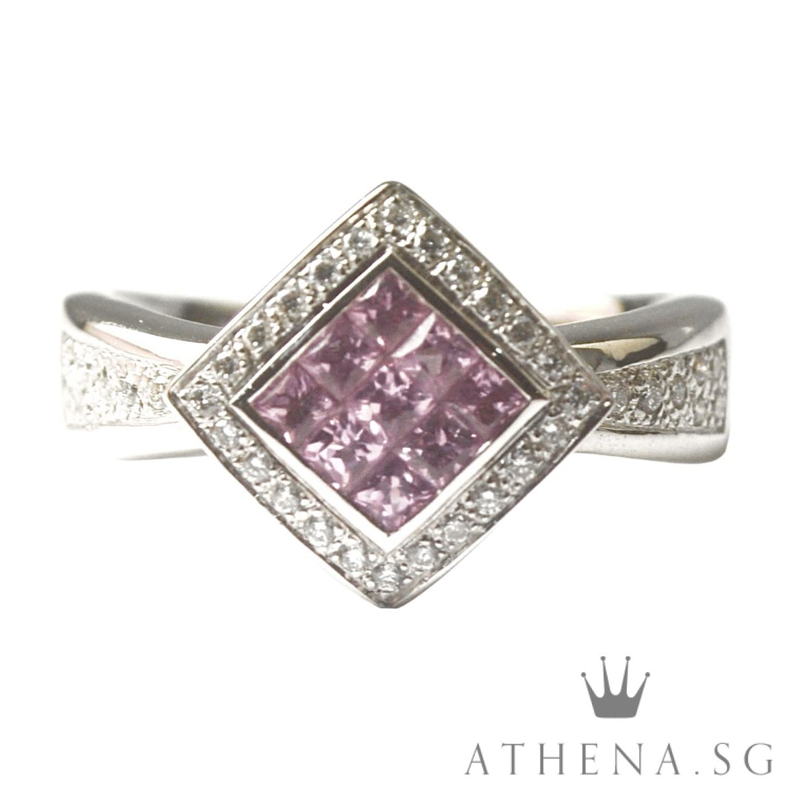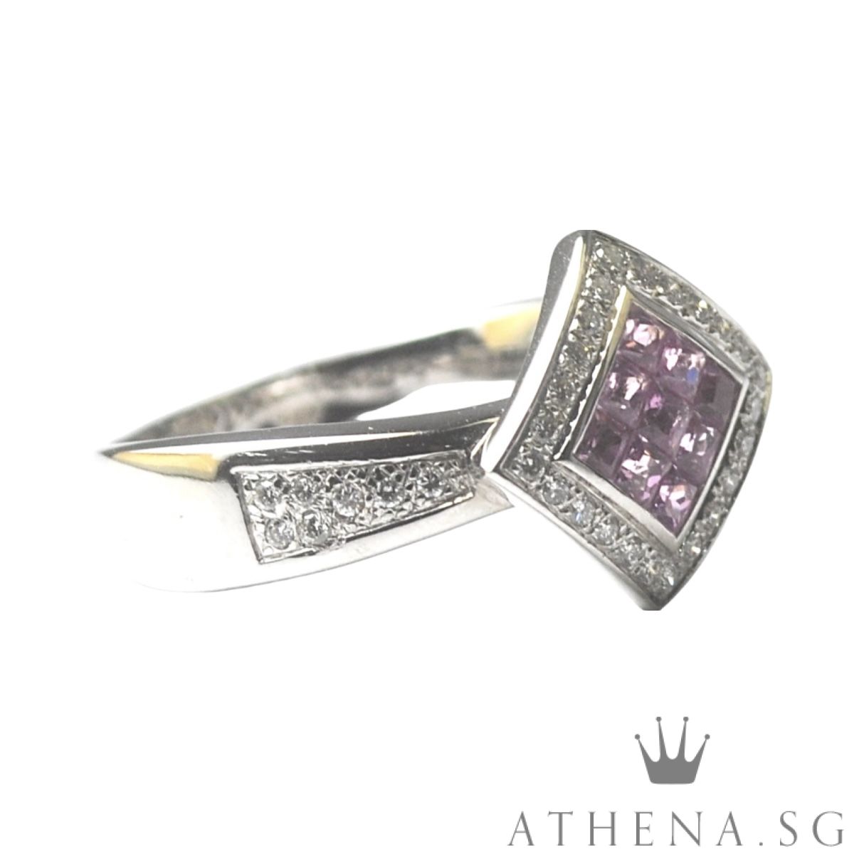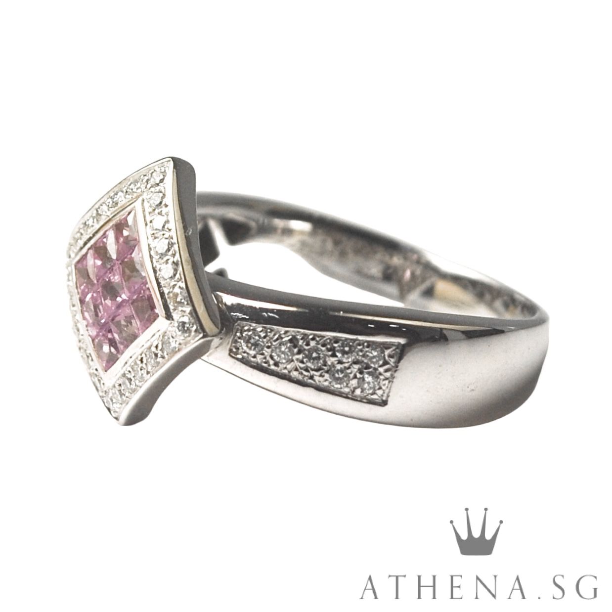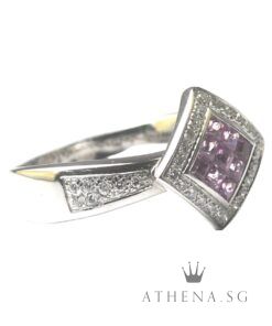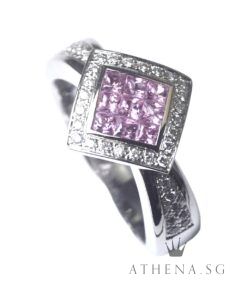 18K WG PINK SAPPHIRE RING WITH DIAMOND D38-0.38CTS 7.60G (SIZE 18) [NETT $1,588.00]
