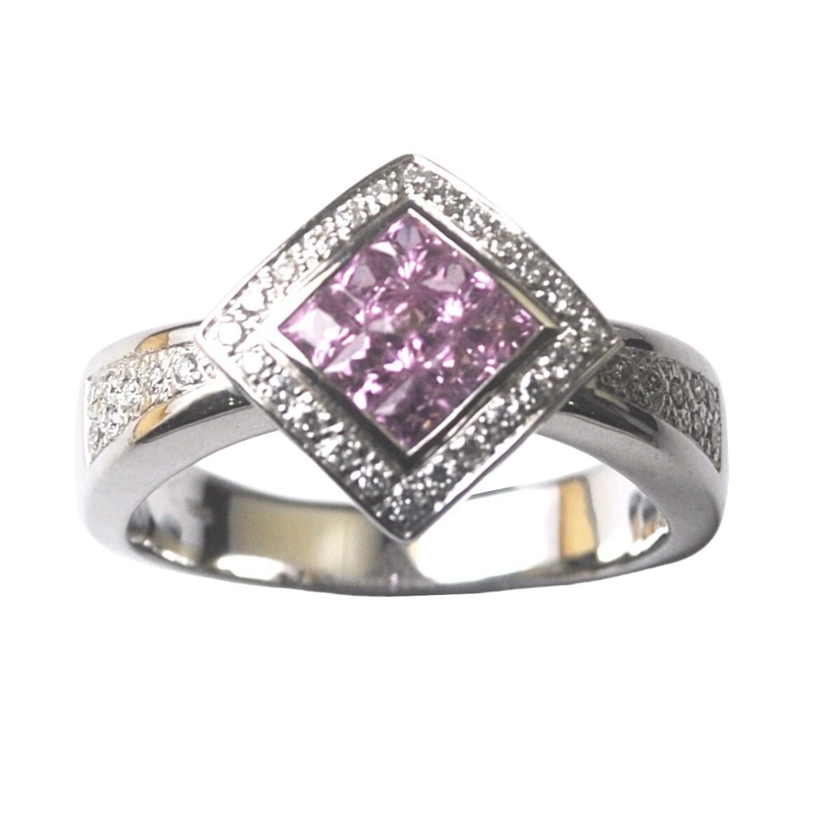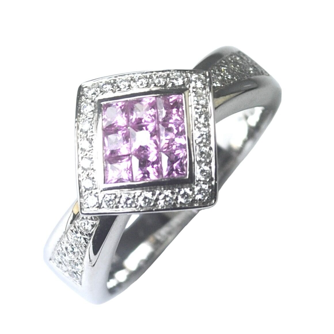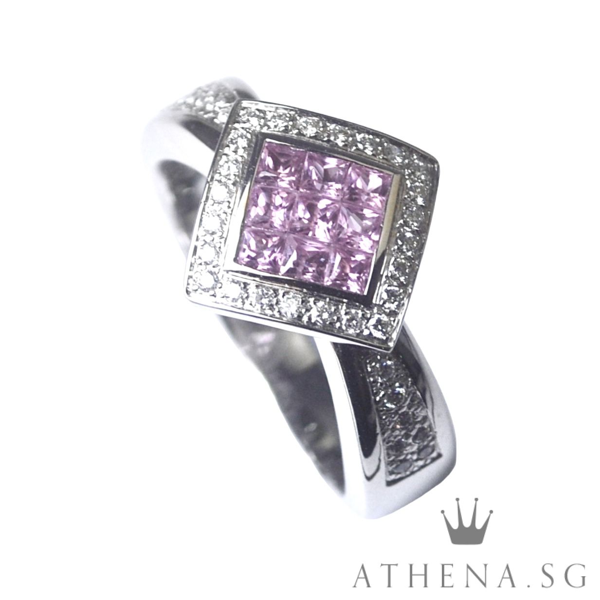 18K WG PINK SAPPHIRE RING WITH DIAMOND D38-0.38CTS 7.60G (SIZE 18) [NETT $1,588.00]