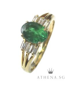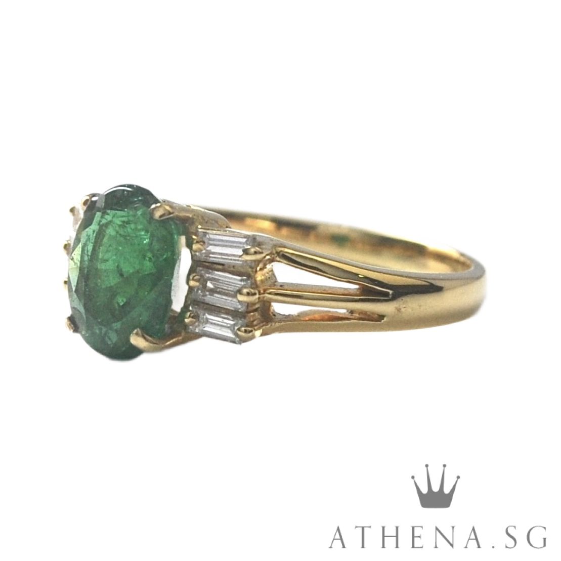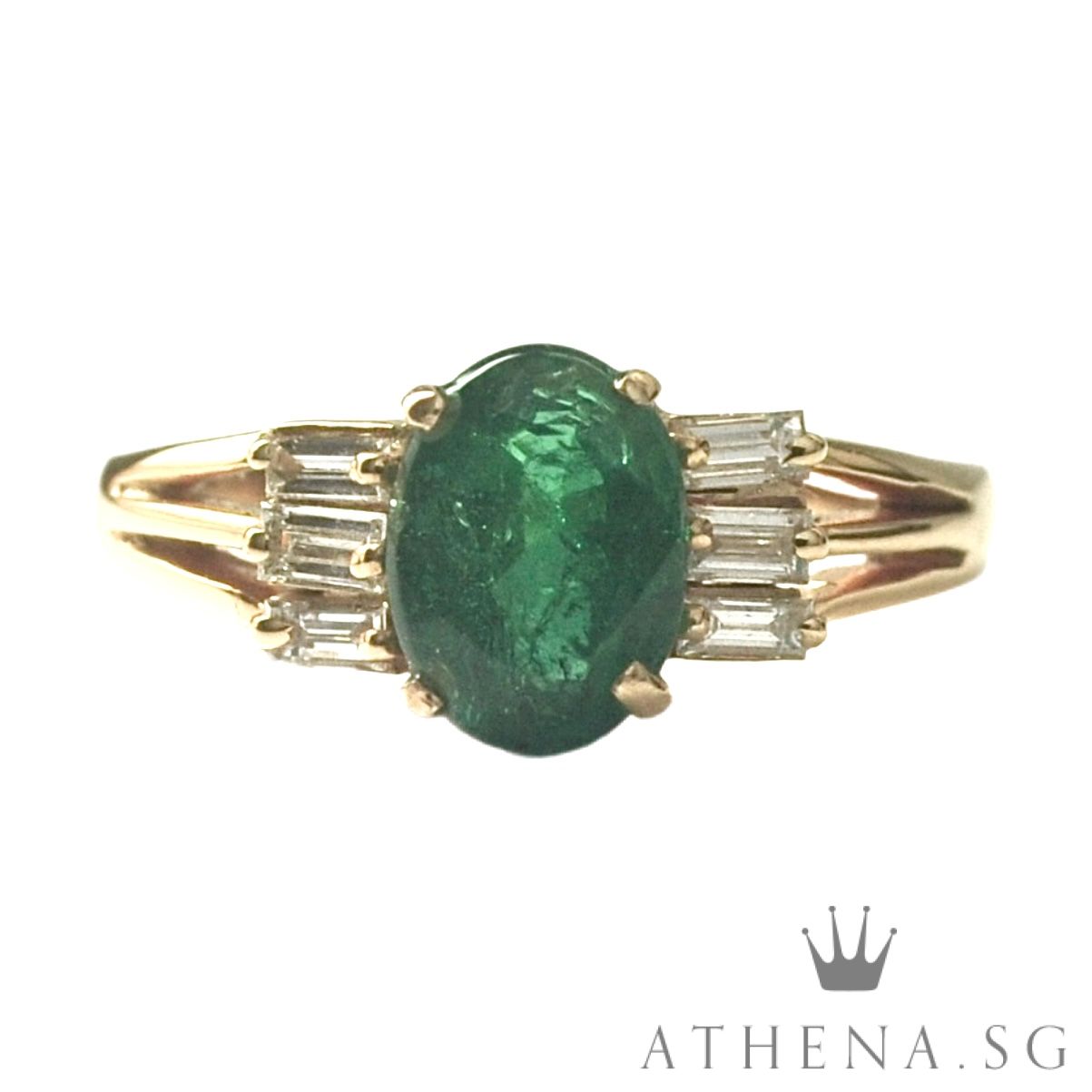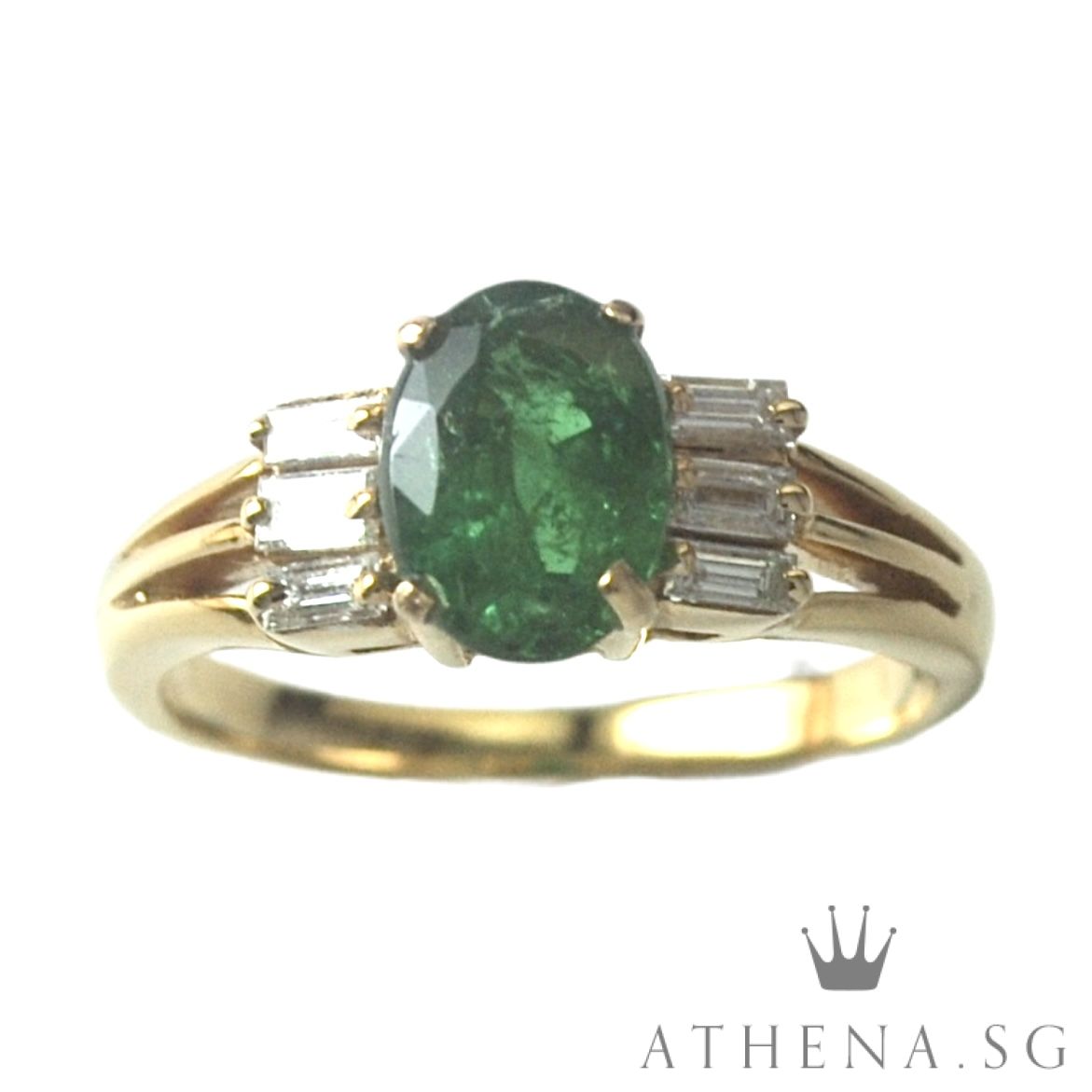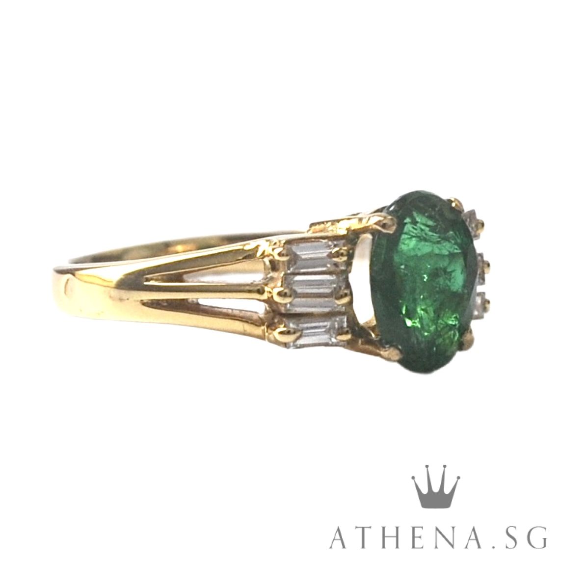 18K Y/G EMERALD WITH DIAMOND RING TP6-0.27CTS EM1-1.45CTS 4.02G (WITH CERT) (SIZE 14.5) [NETT $1,688.00]