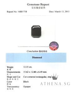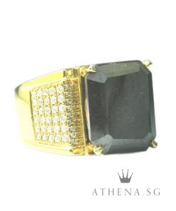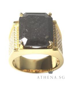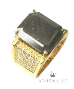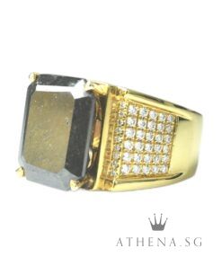 18K YG BLACK DIAMOND RING BD1-12.35CTS D78-0.90CTS 18.20G (SIZE 17) (WITH NGI CERT) ($5,988.00 NETT)