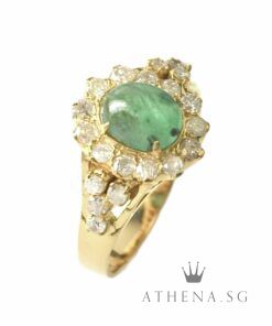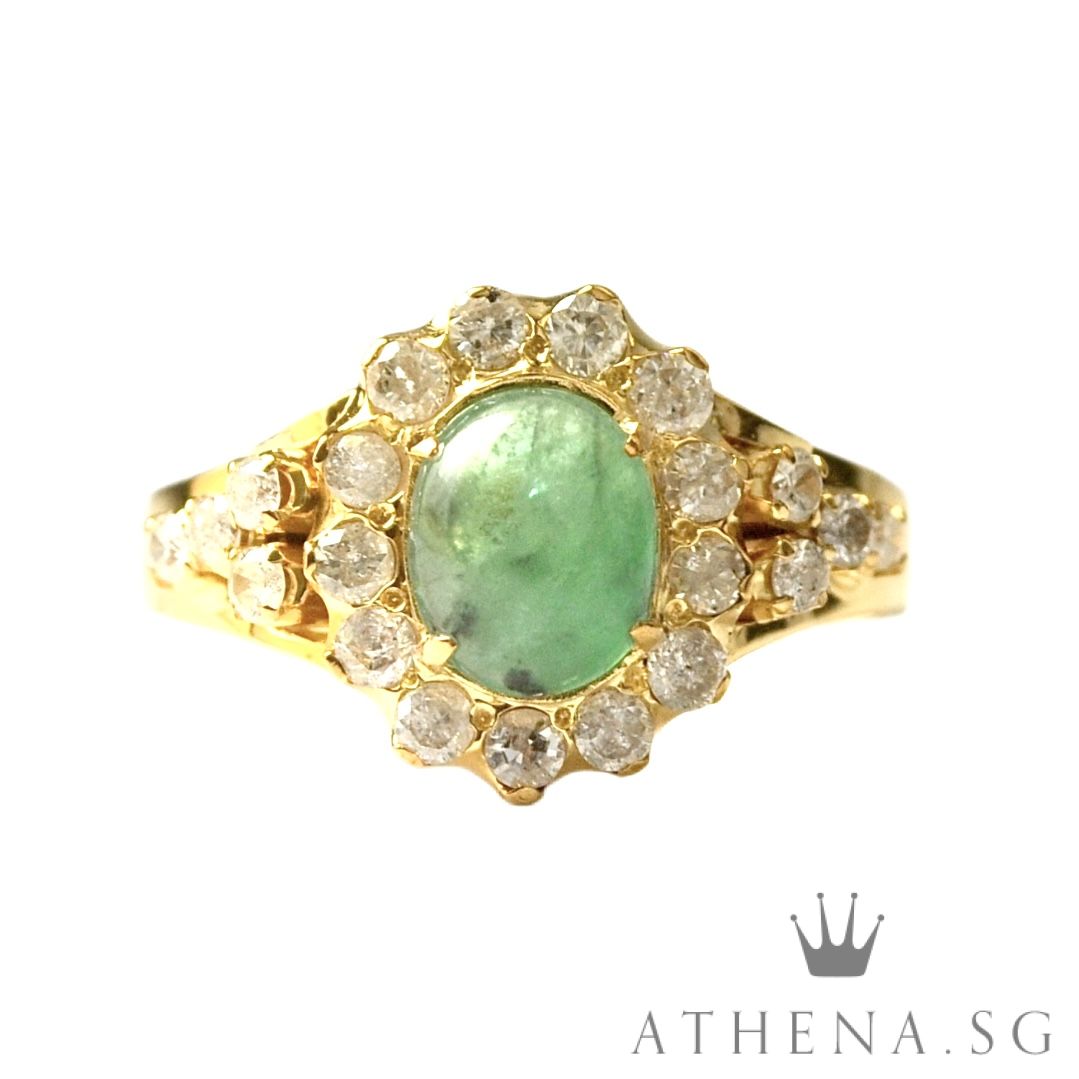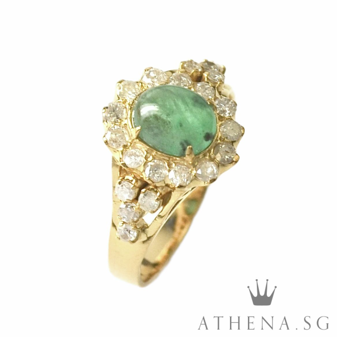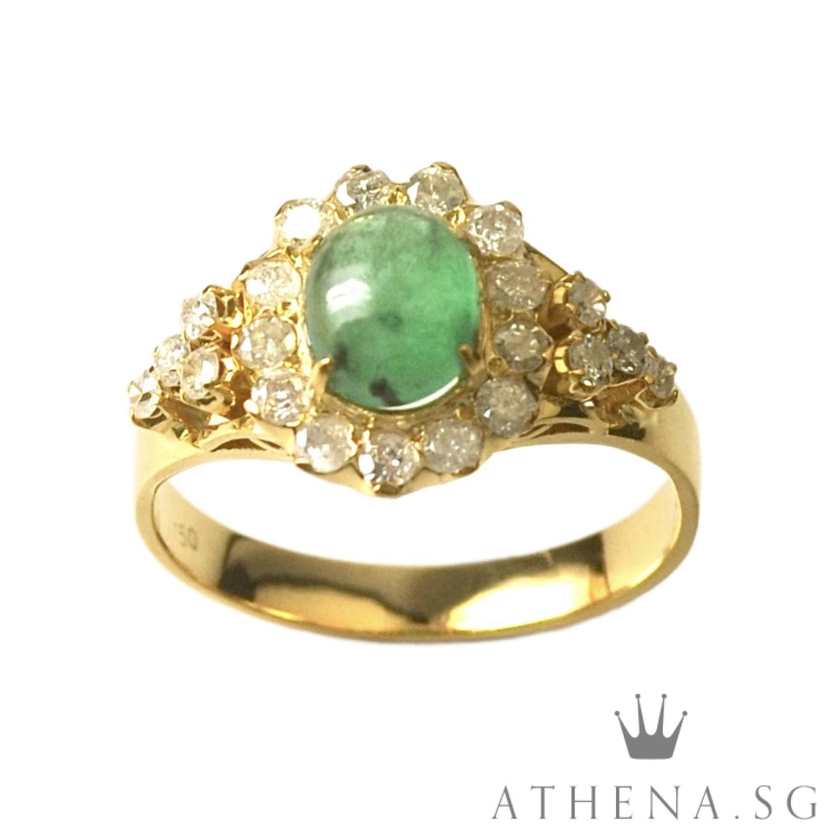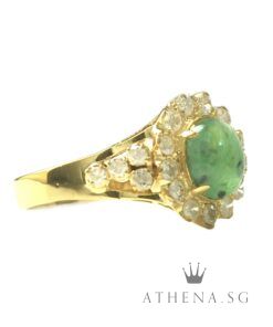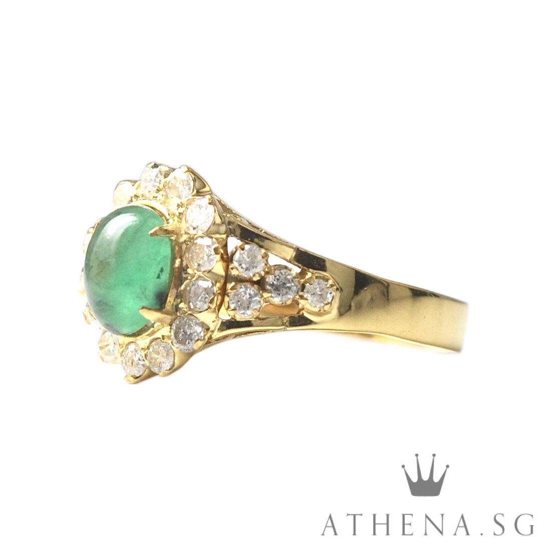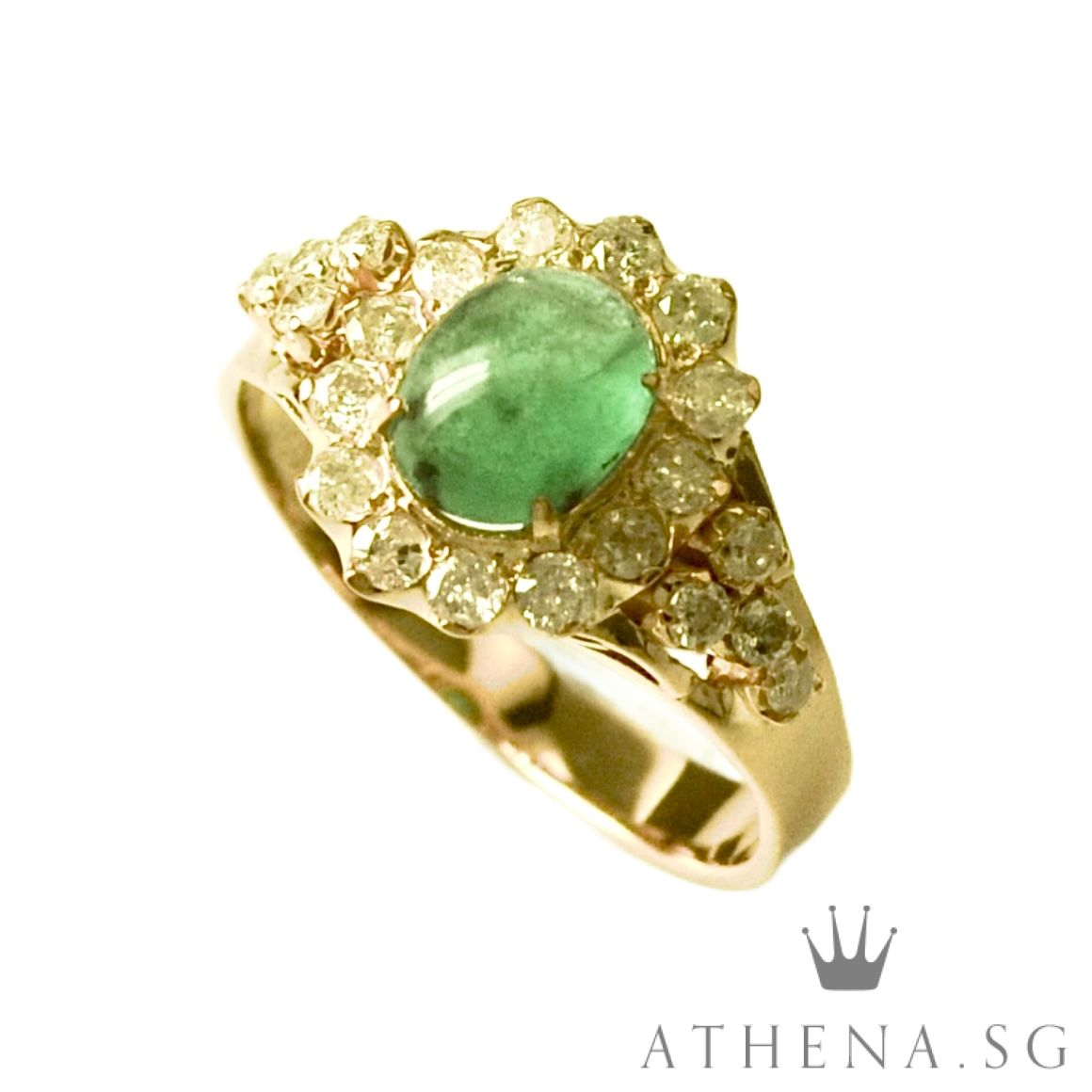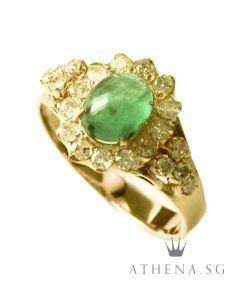 18K YG EMERALD RING WITH DIAMOND D21-0.42CTS 3.72G (SIZE 15.5) [NETT $988.00]