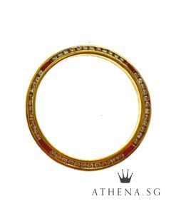 18K YG LADIES SIZE DIAMOND BEZEL WITH RUBY 2.91G 26MM
