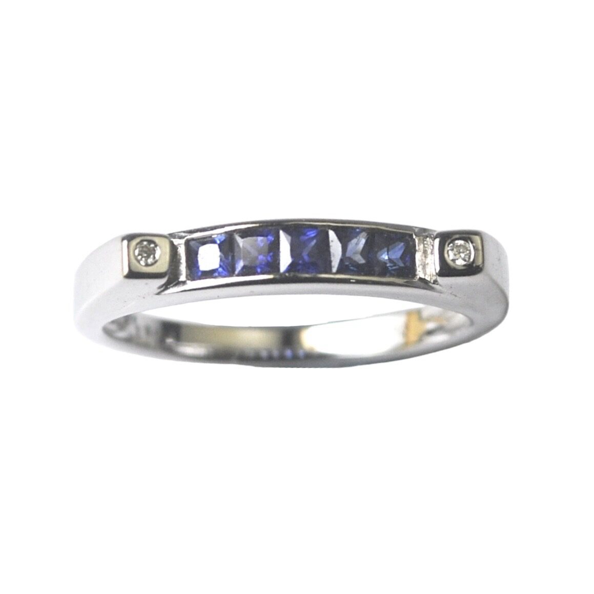 18KW BLUE SAPPHIRE DIAMOND RING D2-0.02CTS 2.86G (SIZE 14.5) [NETT $650.00]