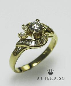 20K YG DIAMOND RING D1-0.30CTS D8-0.16CTS TD12-0.30CTS 3.37G (SIZE 11.5) [NETT $1,288.00]