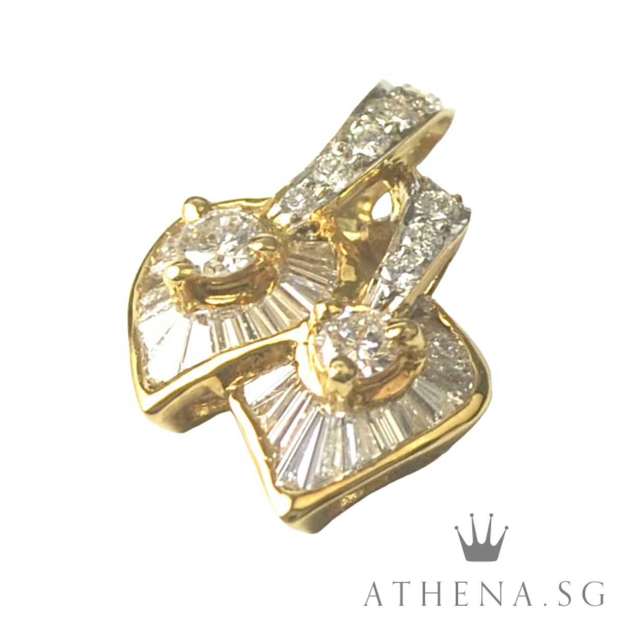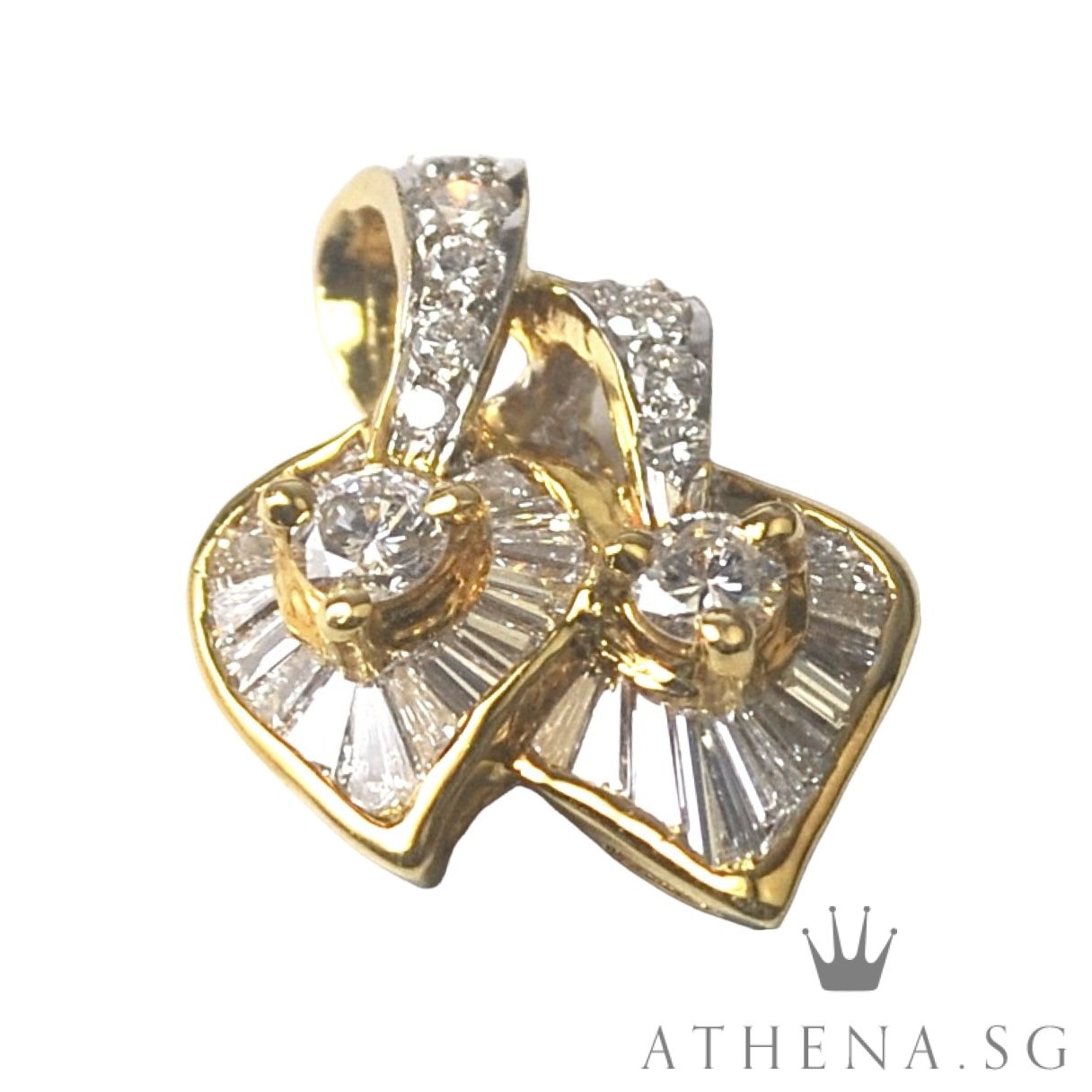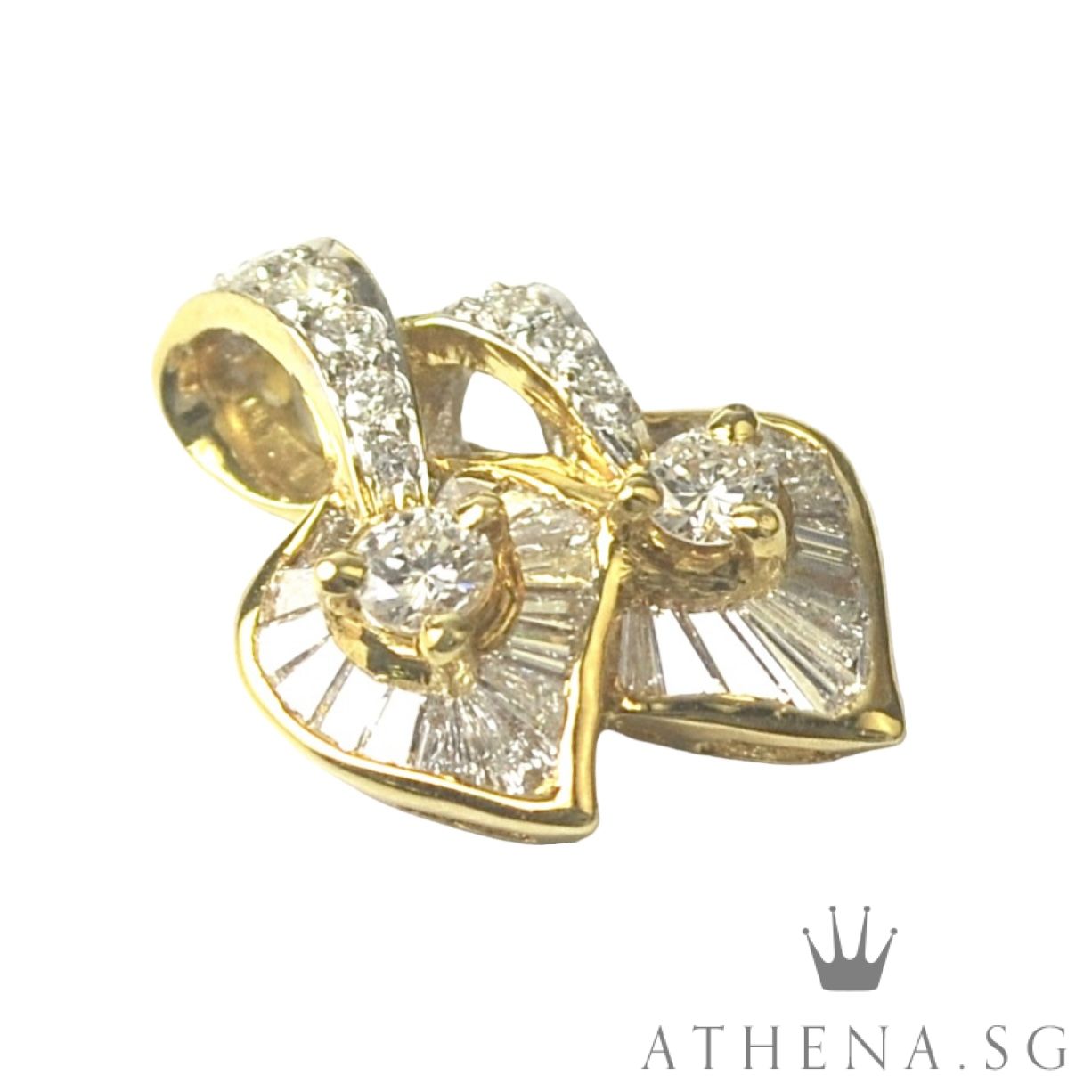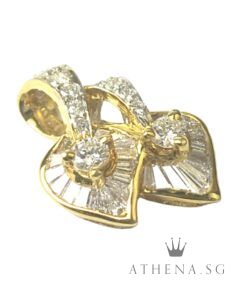 20K YG DOUBLE HEART SHAPE DESIGN DIAMOND PENDANT D12-0.40CTS TD27-0.54CTS 3.17G [NETT $1,288.00]