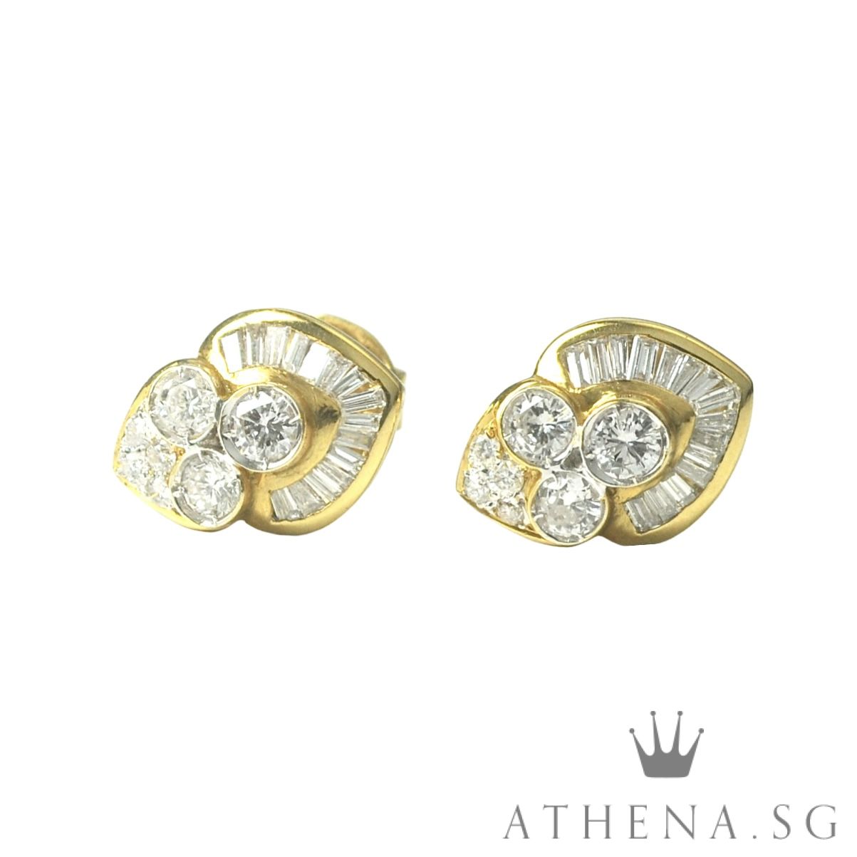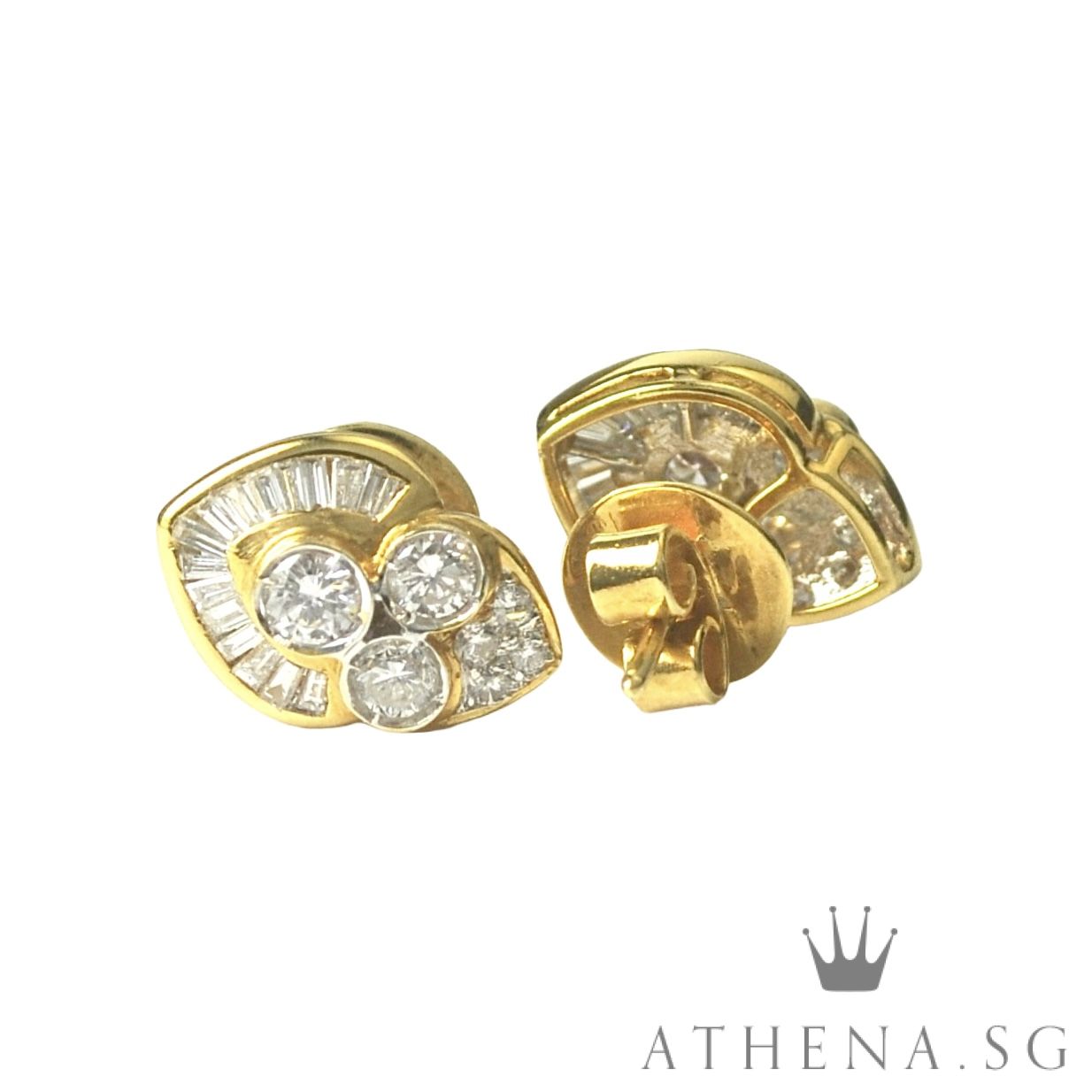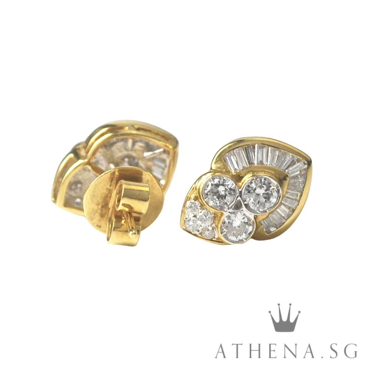20K YG FANCY DESIGN DIAMOND EARSTUD D14-0.80CTS TD30-0.50CTS 5.56G [NETT $1,688.00]