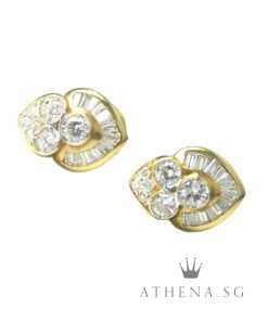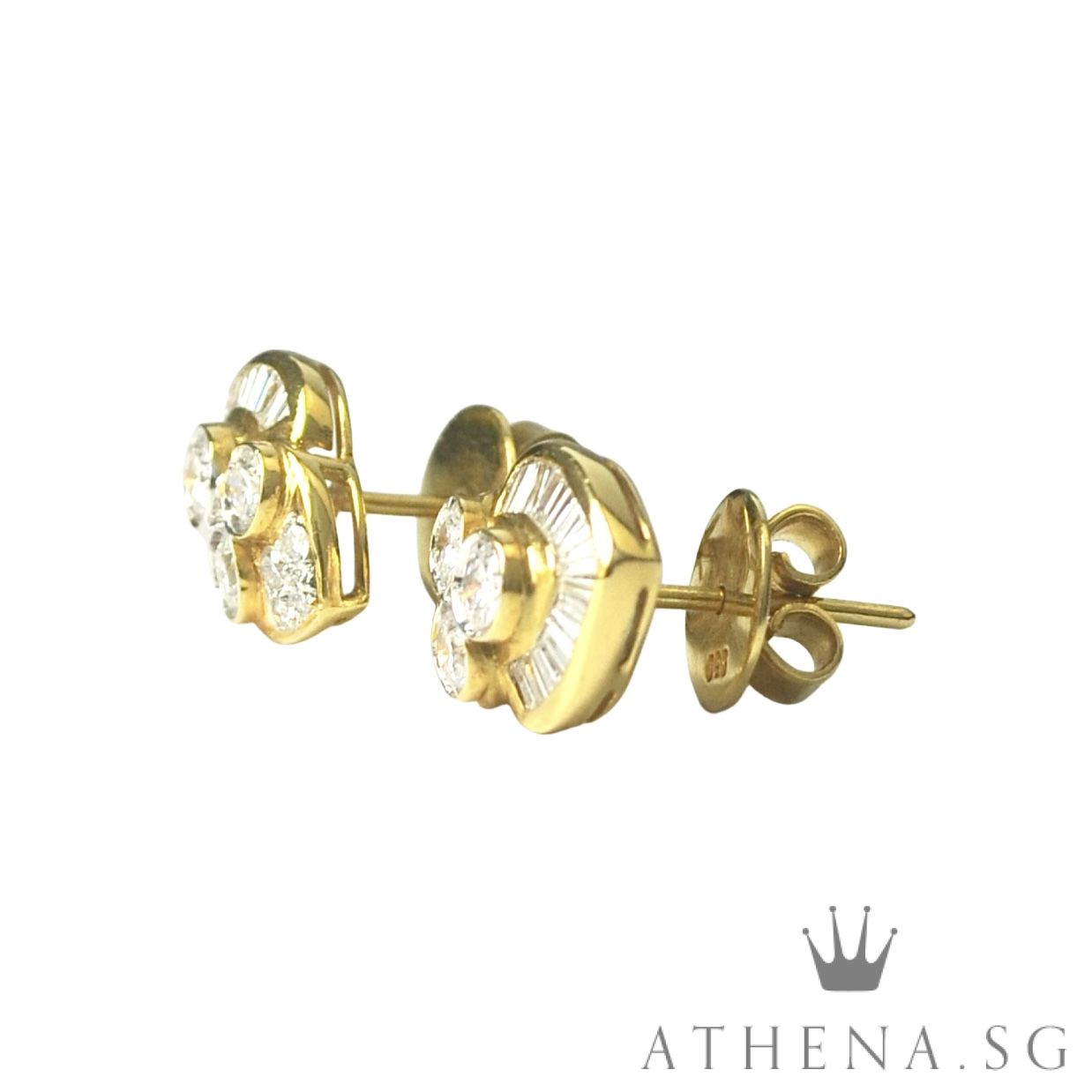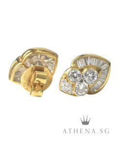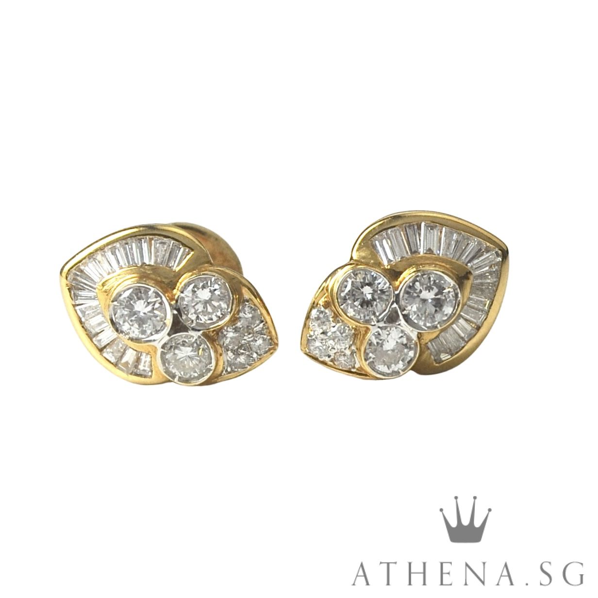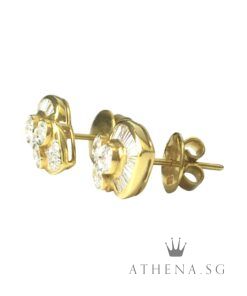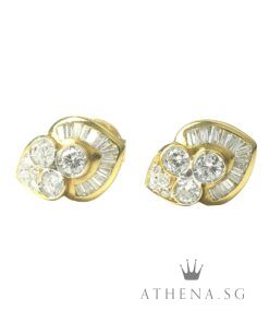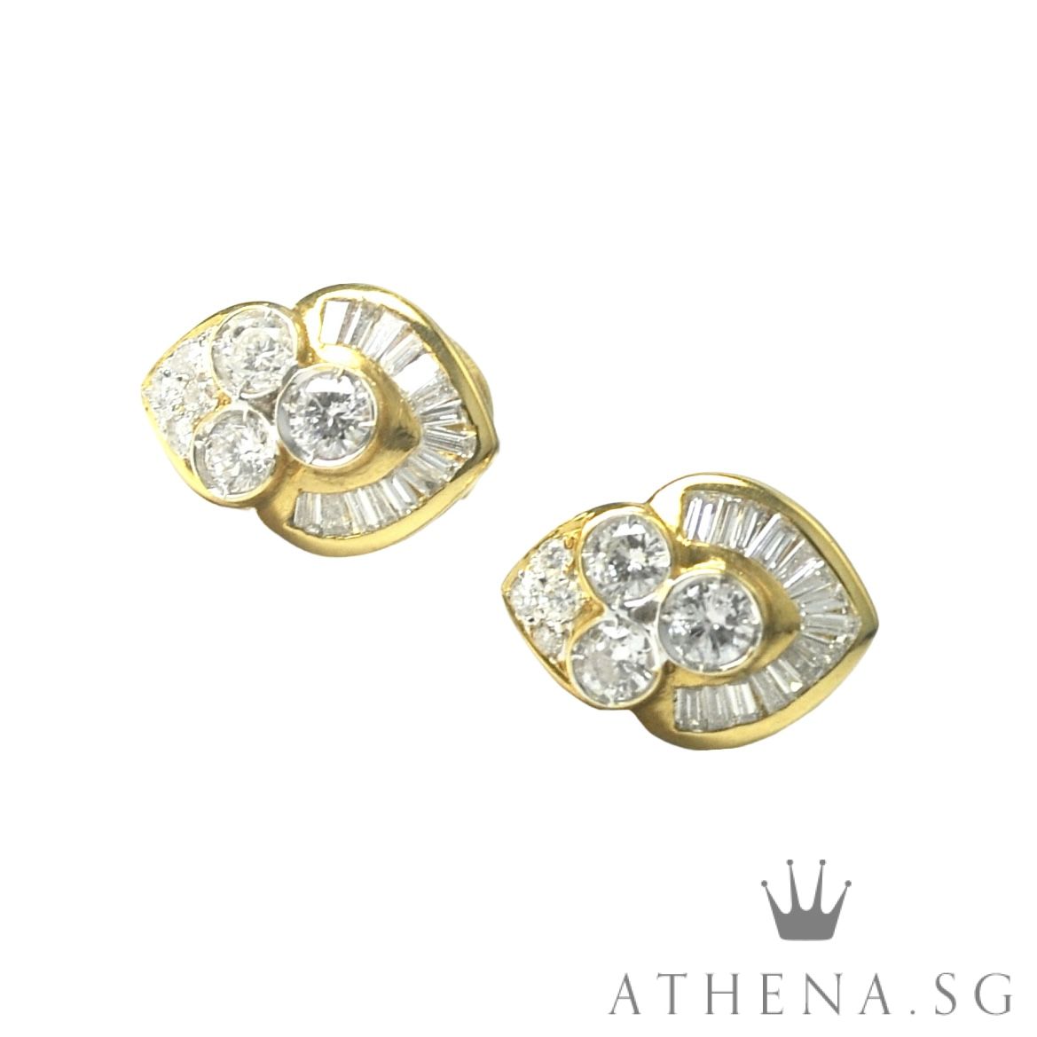 20K YG FANCY DESIGN DIAMOND EARSTUD D14-0.80CTS TD30-0.50CTS 5.56G [NETT $1,688.00]