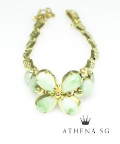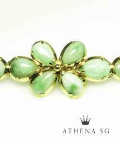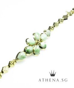 20K YG FLOWER DESIGN JADE BRACELET 10.84G (LENGTH 15.5CM) [NETT $1,988.00]