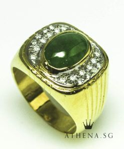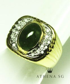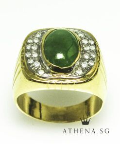 20K YG JADE RING WITH DIAMOND D20-0.30CTS 11.12G (SIZE 17) [CERT] [NETT $2,688.00]